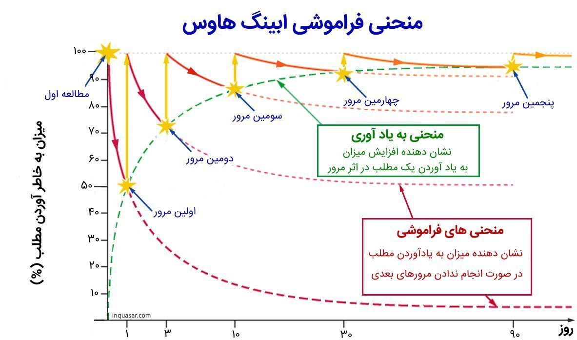 طبق دانسته های منحنی یادگیری یا فراموشی ابینگهاوس در سال 1885 ، با گذشت زمان در طول چند روز یا هفته ، اطلاعات در حافظه از دست می روند ، مگر اینکه آن مطالب چندین دفعه به صورت فعال مرور شوند .